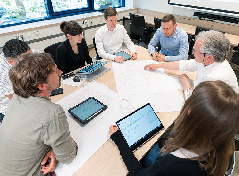 Ein stetiger Austausch im Team gewährleistet einen reibungslosen Projektablauf und sichert termingerechte Ergebnisse.